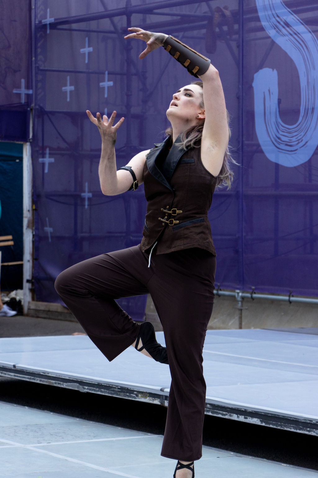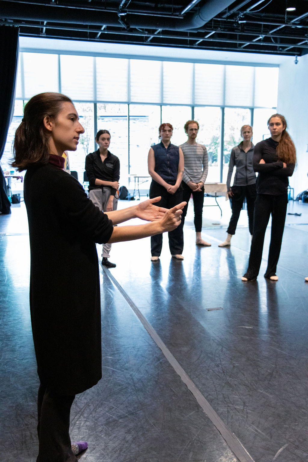 As a dancer and choreographer I am an American eclectic in the way of Gene Kelly or Fred Astaire–spouted in ballet but ripened in dance forms with Africanist roots. Years of running from the ballet barre to the salsa club allow me a voice and vocabulary that synthesizes line and shape with polyrhythm, asymmetry, and grounded feet. In all things partnering and relationships are at the center of my work, my gender-expansive and empathetic pedagogy serving as a balm to the crackling static of dysphoria I feel as a transmasc artist.