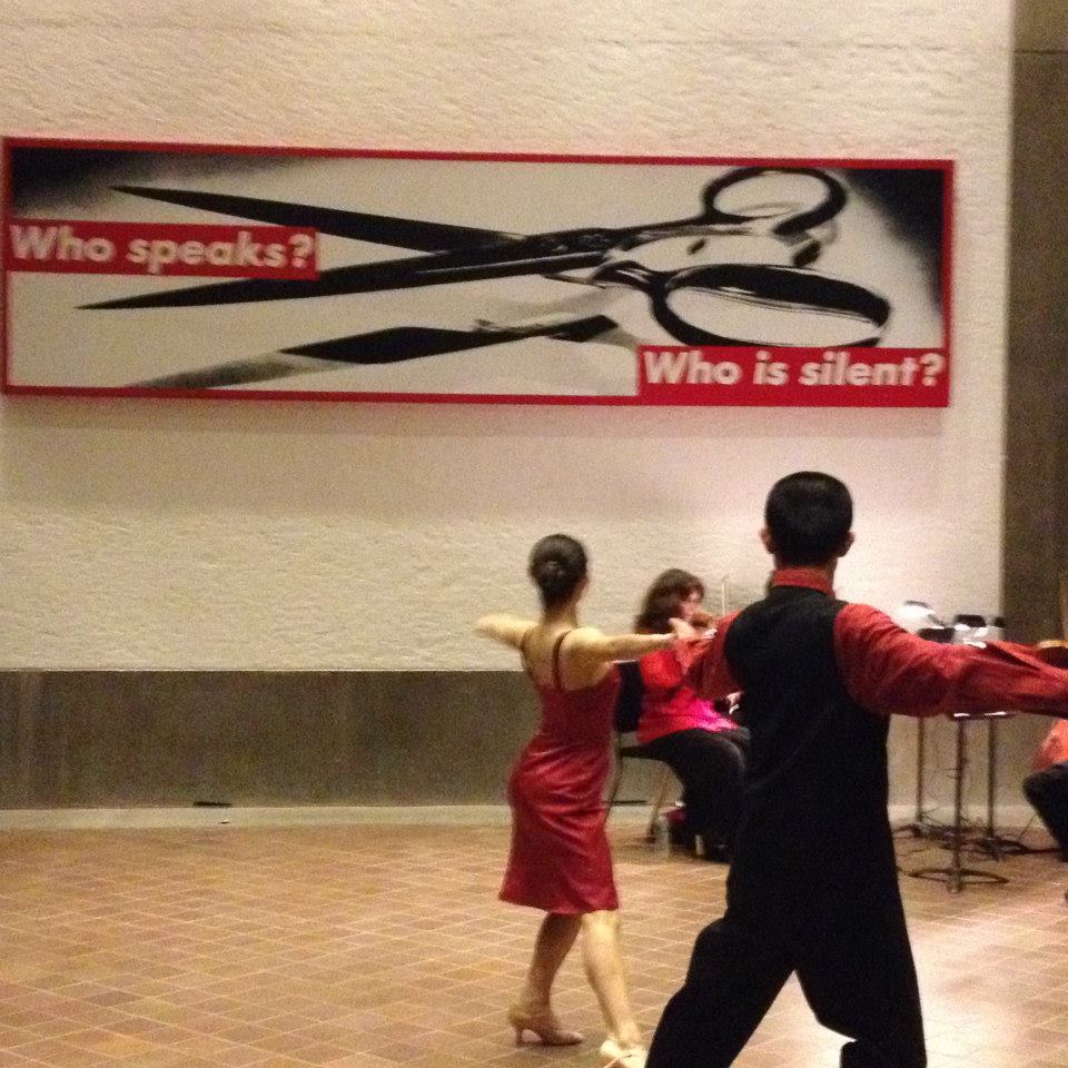 It all started when I got a call from the director of the ballet school I’ve been frequenting, trying to shock–er,ease–my body back into shape from my company days. She had gotten a call from one of the directors of the city symphony orchestra about a concert they were holding in less than a week. On Valentine’s Day. In the local modern art museum. The event was called “Sweet Encounters: Music and Art” and was intended to be a casual, chamber music event with food, wine, art, and, as the symphony director had spontaneously decided–Tango.