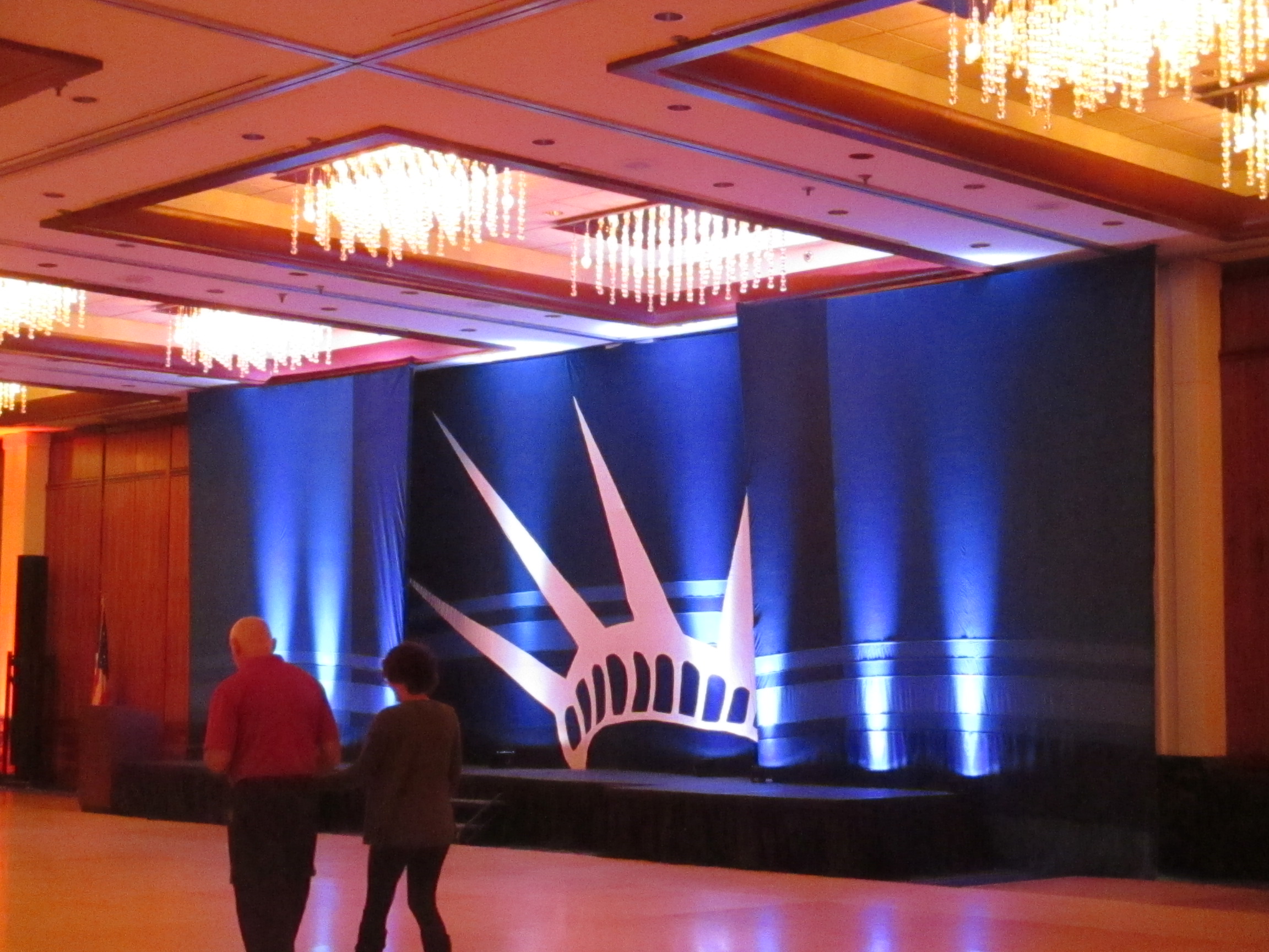 So we drove down to New Brunswick on Friday afternoon, found the hotel, and I was instantly overwhelmed by the numbers of people. l got signed in, looked at many many shoes, and then went to the warm-up session for those of us in showcase. Unfortunately my partner was delayed due to traffic and we didn’t get to do a run-through in the afternoon–which didn’t help with the anxiety. Instead I got to watch all the other couples and worry over who was in our division (Rising Star) and who was a pro dancer.